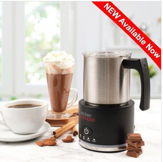 Kitchen Perfected 4-in-1 Stainless Steel Milk Frother & Hot Chocolate Maker - 600W Automatic Milk Frother, 250/500ml Capacity, Dishwasher Safe Jug/Lid, 4 Preset Modes - E1780BK