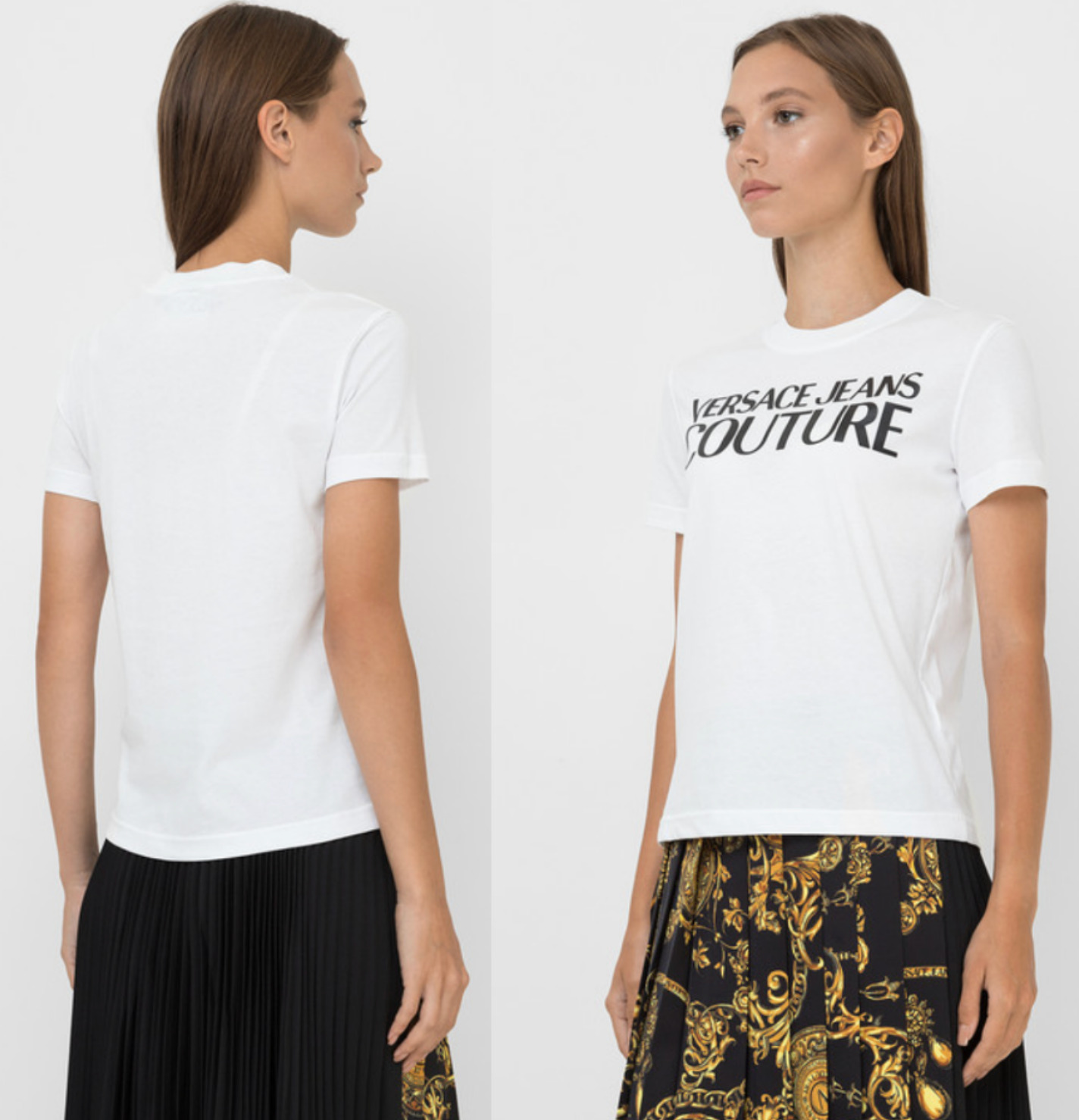 Versace Jeans Couture Crew Neck Logo Top Cotton Blouse Retro Shirt Hot