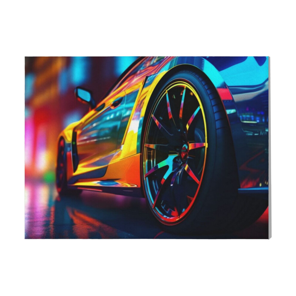(Hot Wheels Couture=3189) Canvas Print Framed DIY Install Kit- 16x20" Retro Car Motor Vehicle Auto Ride Sled Wall Art Home Decor Poster for Office Bed