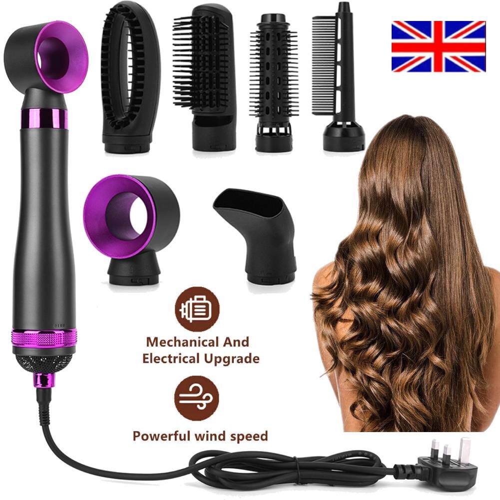 6 In 1 Electric Hot Hair Dryer Brush Comb Curling Volumizer Wand Straightener