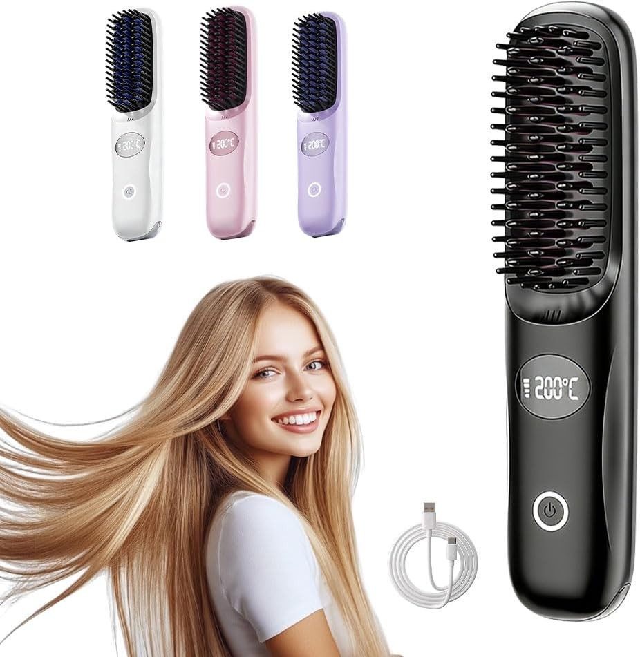 Cordless Hair Straightener Brush Portable Hot Brush Hair Straightener