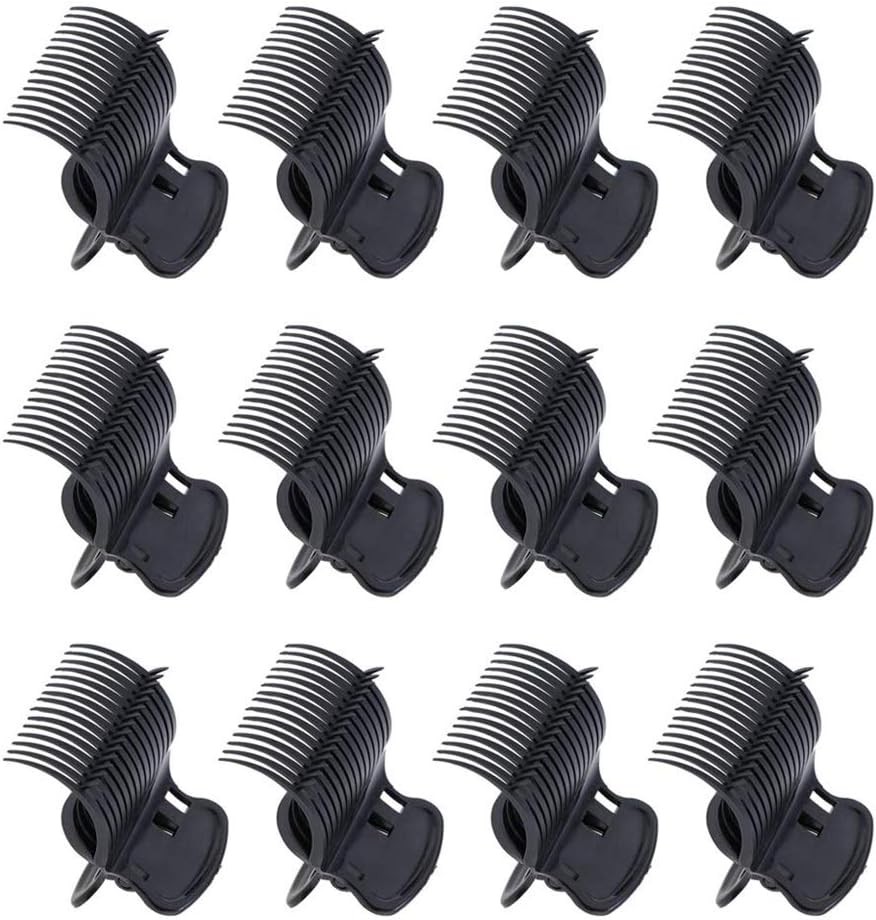 Hot Roller Clips Hair Curler Claw Replacement for Hair Section Styling - 12 Black Clips for Women and Girls