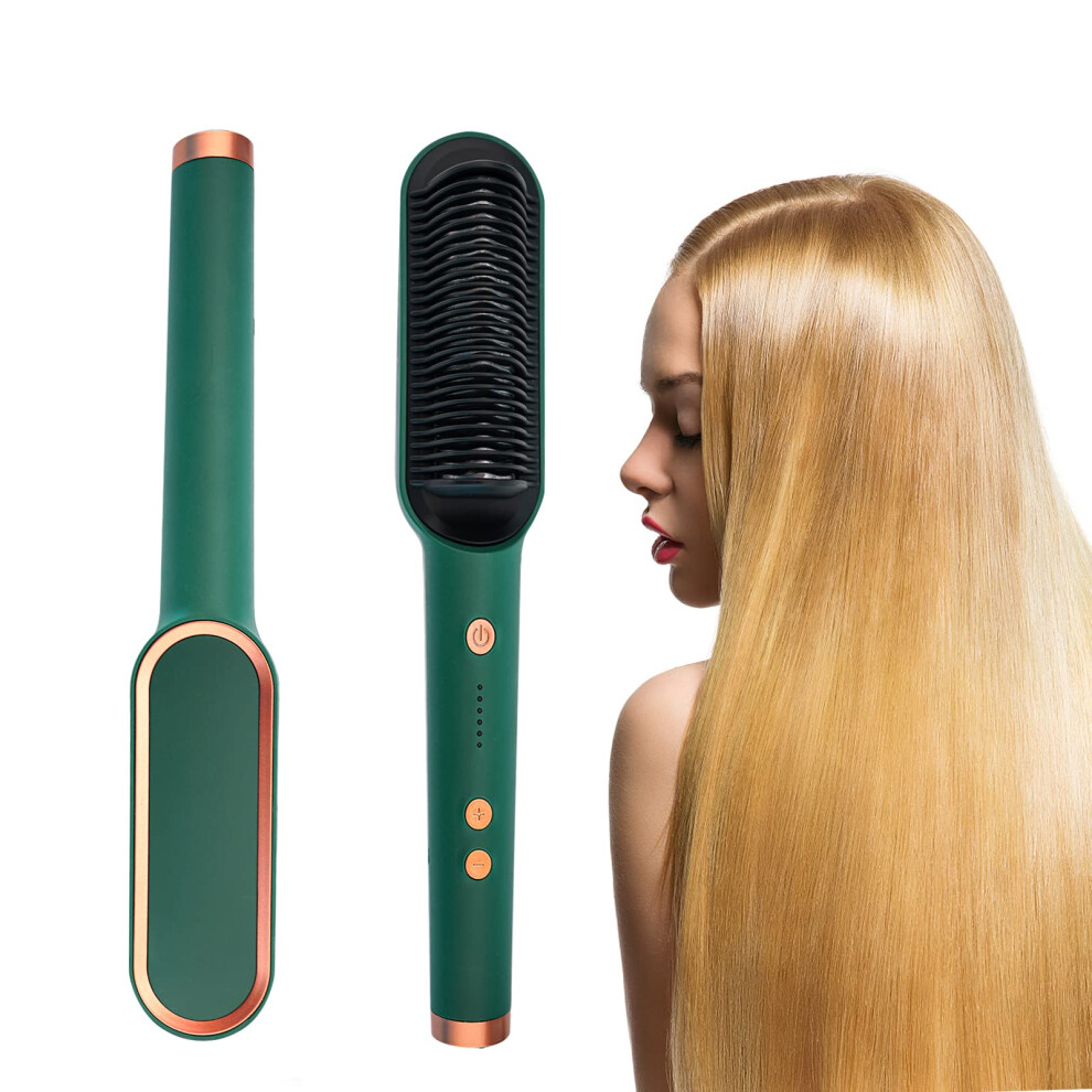 (green) Hair Brush Hot Air Comb Straightening Dryer Styler Hair Straightener Brush