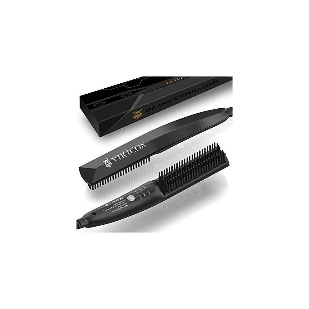 VIKICON Beard Straightener, 30s Quick Heated Beard Brush, Mini Heating Straightening Comb for Men, Ionic/Lightweight/Fast/Anti-scalding Hot Hair