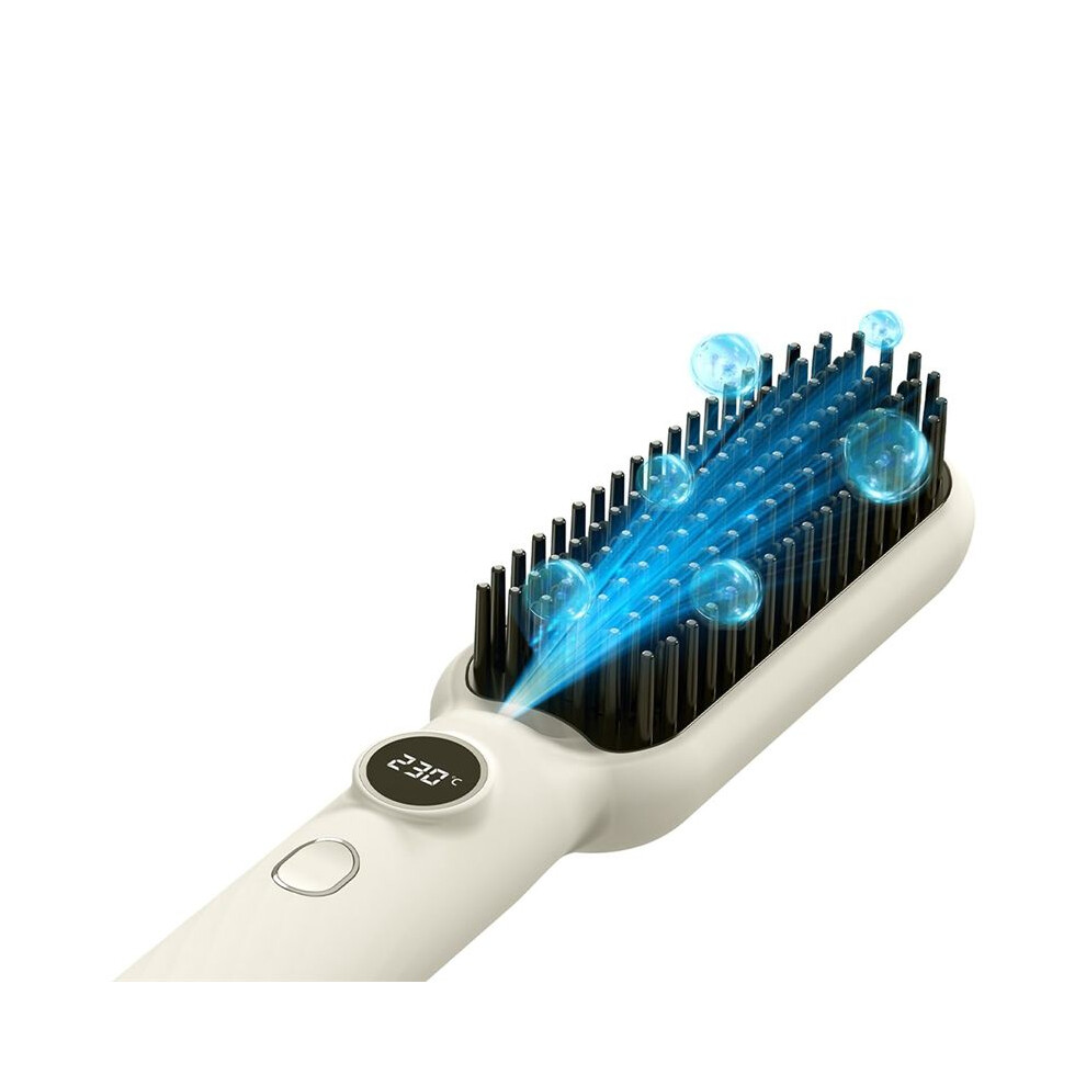 Cordless Straightener Brush ON-THE-GO, 8400mAh Hot Hair Straightening Rechargeable Portable Smoothing Heated Hot Hair Styling Comb with Exclusive Charging Dock, Negative Ions Anti Frizz