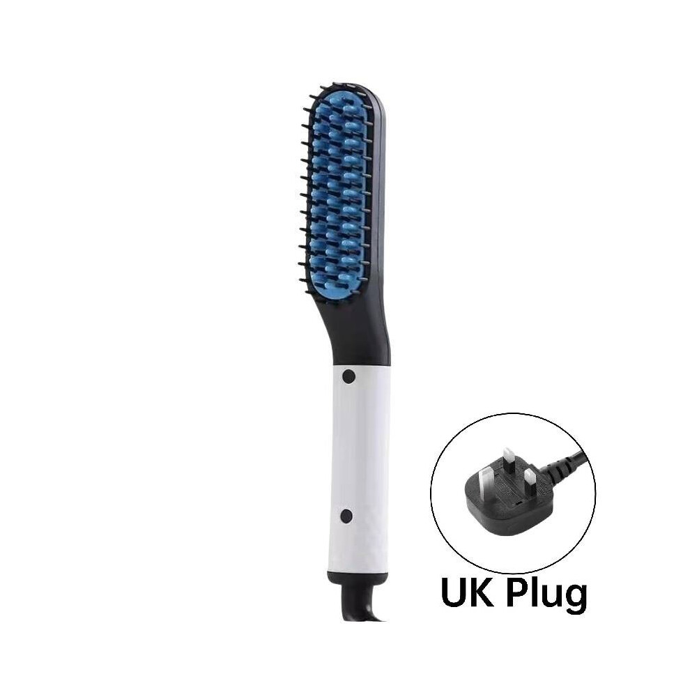 (White UK) Straightener Multifunctional Hair Styler Electric Hot Straightening Comb Brush