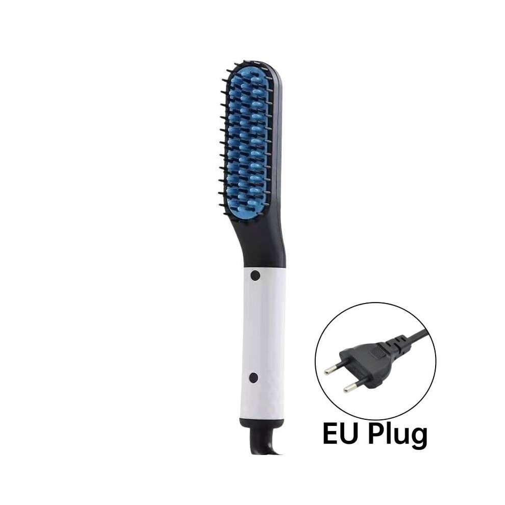 (White EU) Straightener Multifunctional Hair Styler Electric Hot Straightening Comb Brush