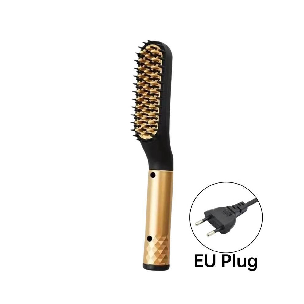 (Gold EU) Straightener Multifunctional Hair Styler Electric Hot Straightening Comb Brush