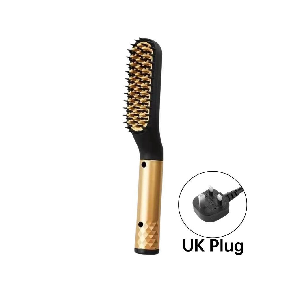 (Gold UK) Straightener Multifunctional Hair Styler Electric Hot Straightening Comb Brush