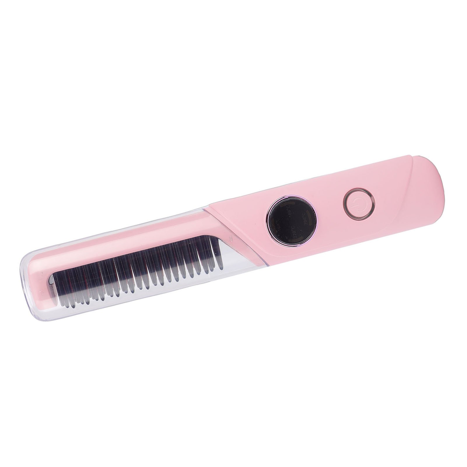 Electric Cordless Hair Straightener and Curling 2 in 1 Dry Comb Mini USB Charging Hot Straightening Pink