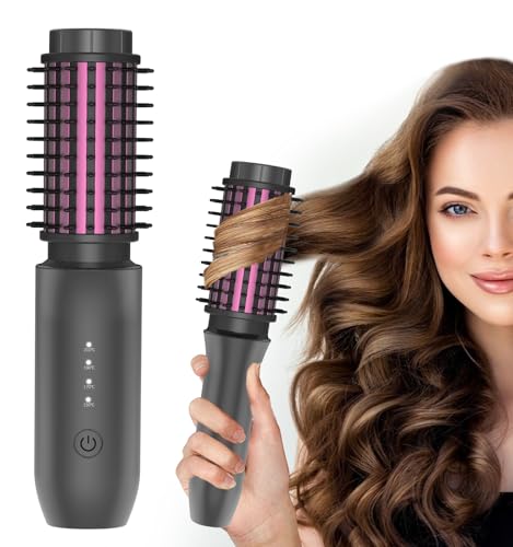 Cordless Curler Brush with 4 Heat Setting for Long Hair, Travel Hot Hair Curler Brushes, 3-in-1 Portable Heated Curling Brush for Hair Styling | Tangle-Free, Grey