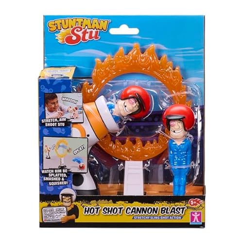 Stuntman Stu Hot Shot Cannon blast Sling shot toy with two rubber figures and ring of fire target Create fun stunts at home Toys