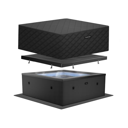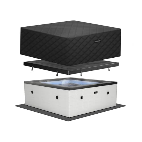 Wave Garda Energy-Efficient Hot Tub Bundle | 6-Person Rigid Eco Foam Spa with Thermal Cover & Insulated Foam Mat | Charcoal Black
