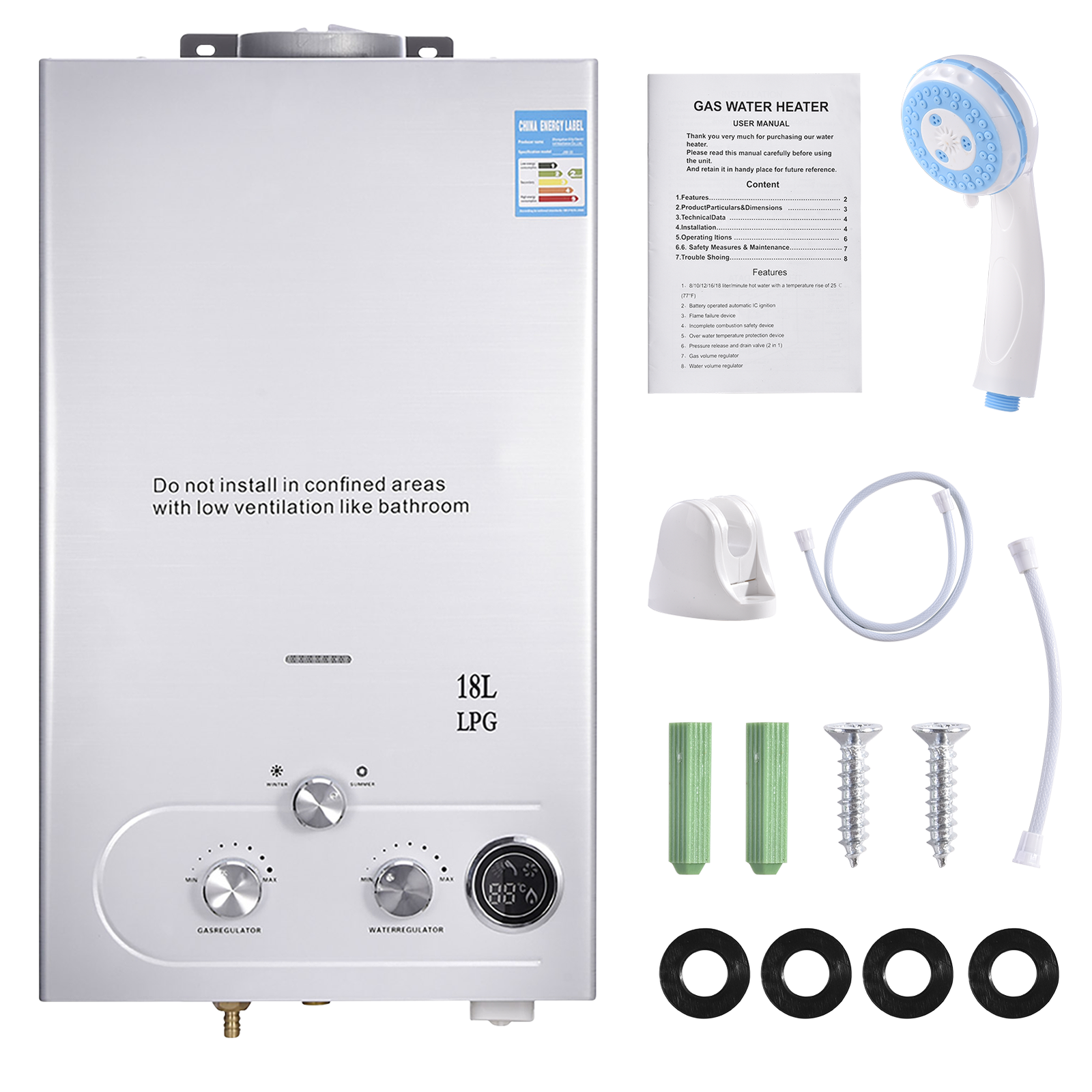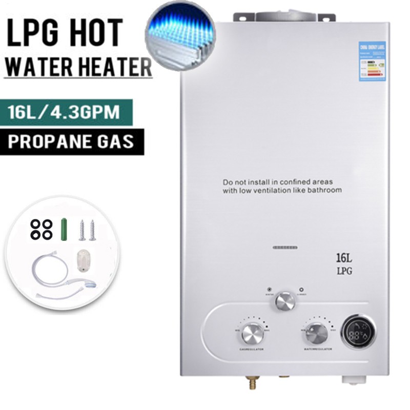 8L 16KW LPG Propane Gas Tankless Instant Hot Water Heater Boiler With Shower Kit