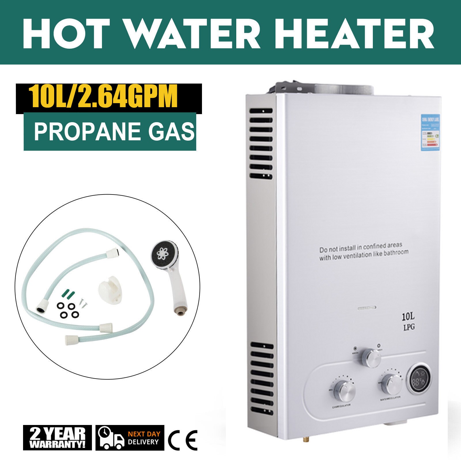 8L LPG Propane Gas Tankless Instant Hot Water Heater Boiler With Shower Kit