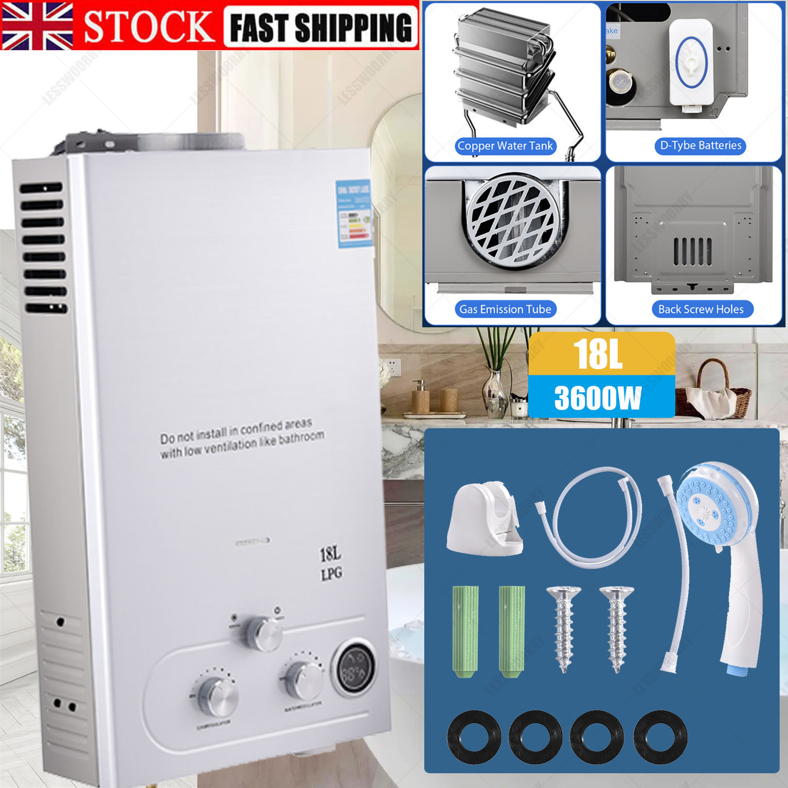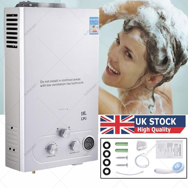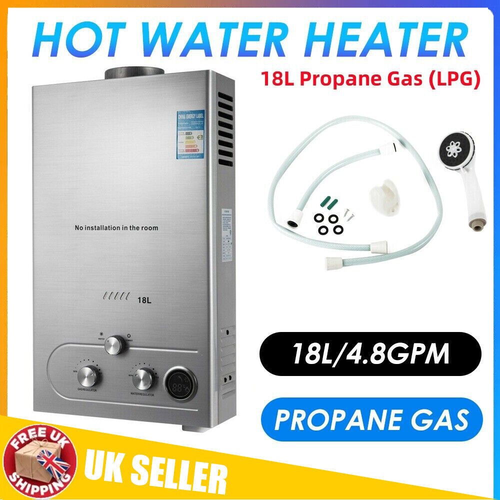 18L LPG Propane Gas Tankless Instant Hot Water Heater Boiler With Shower Kit UK