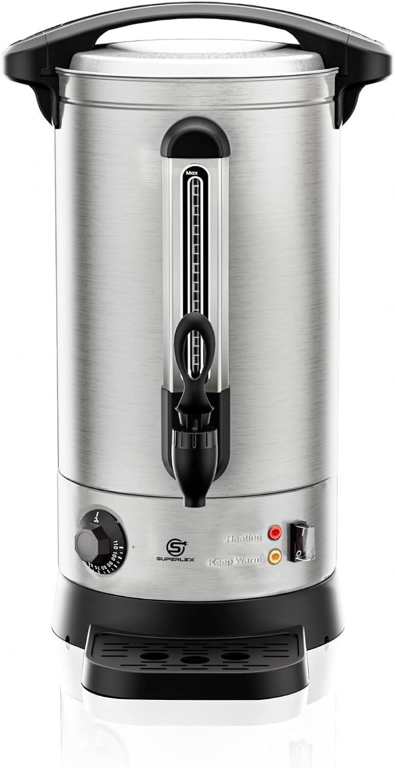 SUPERLEX Electric Catering Urn 1500W, 10L Hot Water Boiler Dispenser with Thermostat, Stainless Steel Tea Urn Kettle Auto Keep Warm & Anti-drip Tap, Safety Cut-off, for Home, Office, Commercial Use