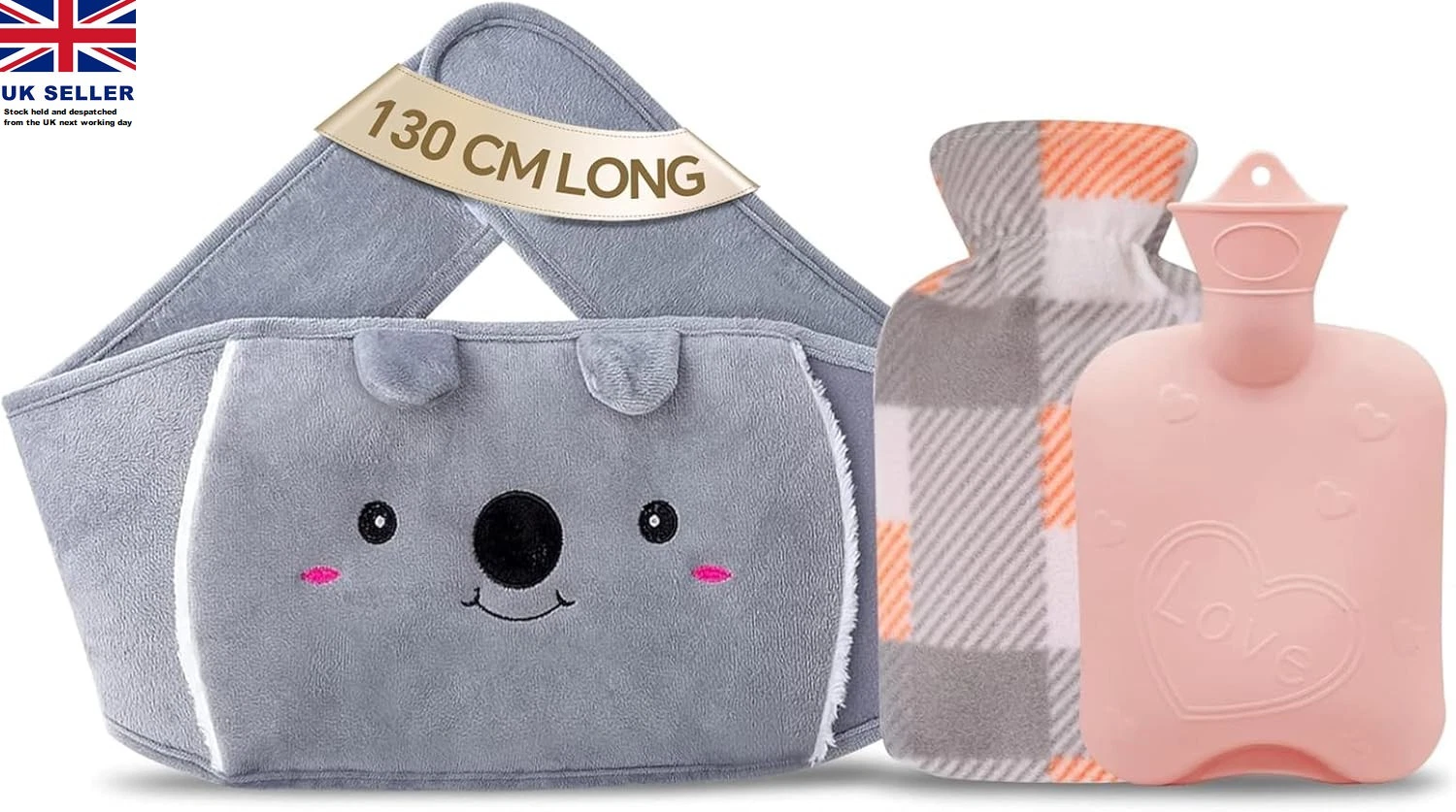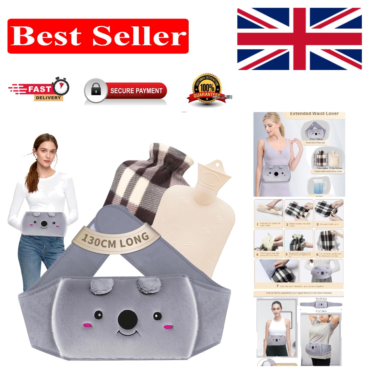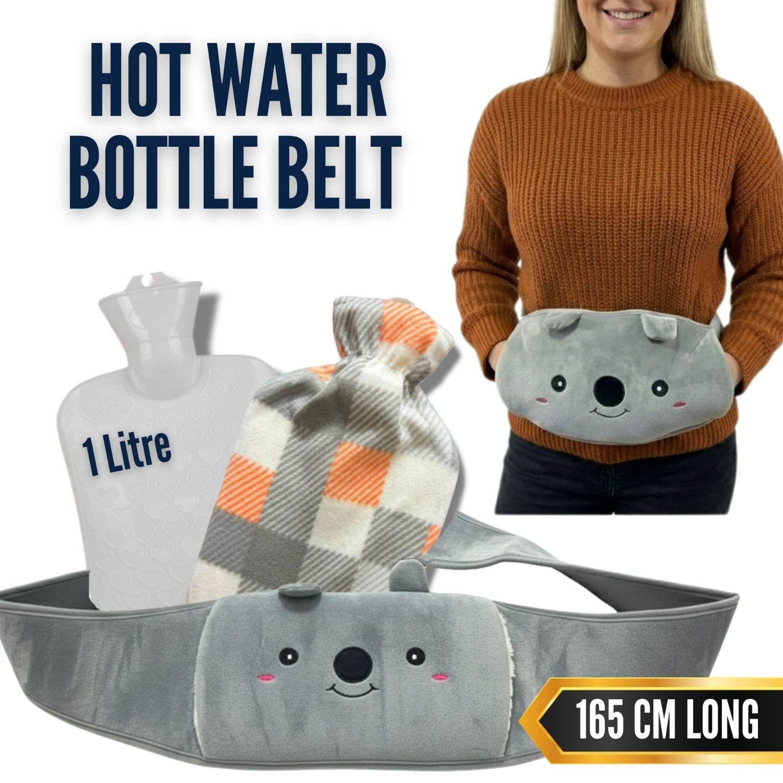 Hot Water Bottle Belt 3-in-1 1 Litre PVC Heat Bottle with Koala Cover and 120 cm Portable Belt for Comfort and Relief