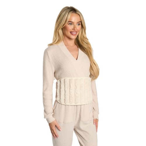 OHS Hot Water Bottle Belt Ribbed Fleece, Wearable Adjustable Rubber Hot Water Bottle Women Plush Hand Waist Warmer Cover Heat Pack for Shoulder Pain Relief Neck, Cream