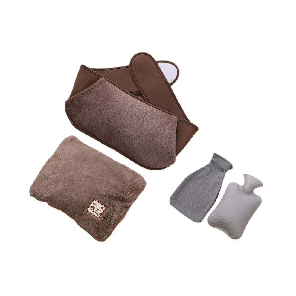 Portable Hot Water Bottle With Belt Carrier Set Rubber Water Bag Soft Plush Waist Cover Period Pouch Brown 4Pcs
