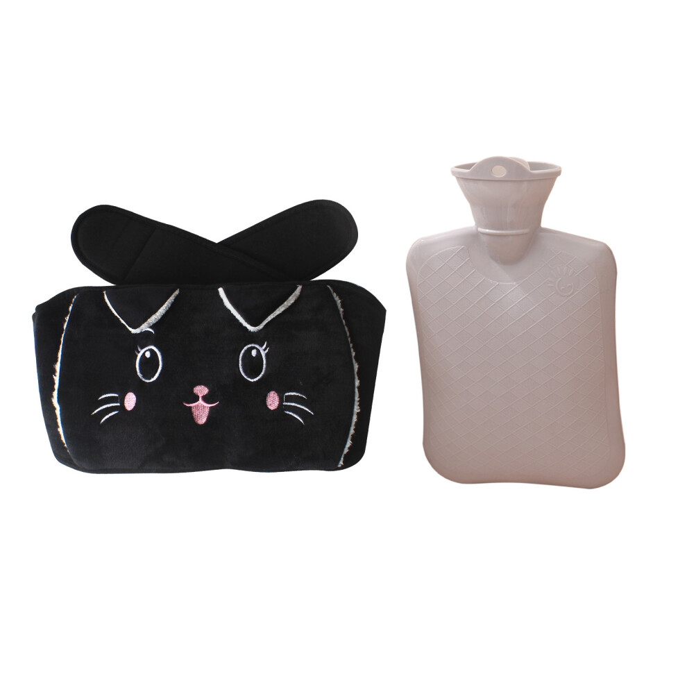 (cat, One size) 1000ml Hot Water Bottle Bag + Belt Rubber Or Warm Plush Pouch Waist Cover Belt