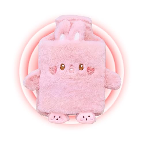 Hot Water Bottle, 1L Hot Water Bottle with Soft Plush Cover, Cute Hot Water Bottles, Super Soft Fluffy Cartoon Cover, Removable for Cleaning, for Kids, Adults and Teens