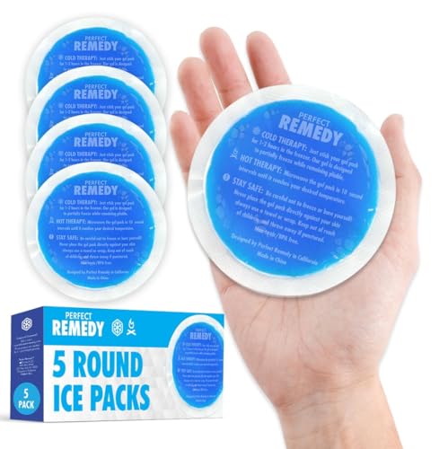 Perfect Remedy Round Gel Ice Pack for Hot & Cold Compress, Reusable Injury Ice Pack for Aid in Pain, Soothing Soft Gel for Soreness, Muscle Strain Conditions, Hot Water Bottles Alternative (5Pk, Blue)