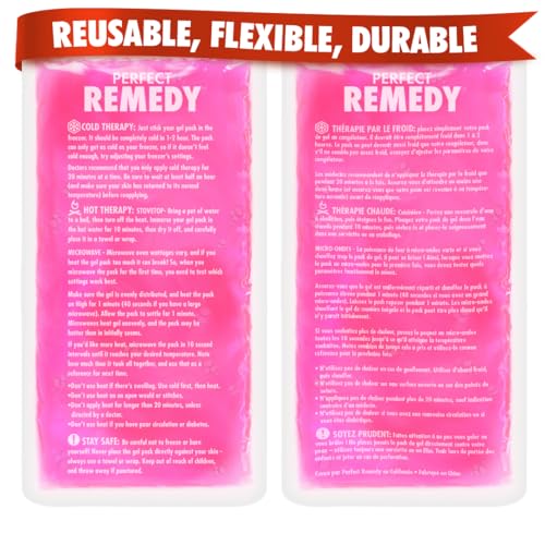 Perfect Remedy Gel Ice Pack Hot & Cold Compress, Reusable Injury Ice Pack for Pain Relief Help, Soothing Soft Gel for Soreness, Muscle Strain Conditions, Hot Water Bottles Alternative (2Pk, Pink, Reg)