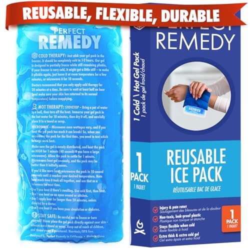 Perfect Remedy Gel Ice Pack for Hot & Cold Compress, Reusable Injury Ice Pack for Pain Relief Support, Soothing Soft Gel for Soreness Muscle Strain Condition, Hot Water Bottles Alternative (Blue, Reg)