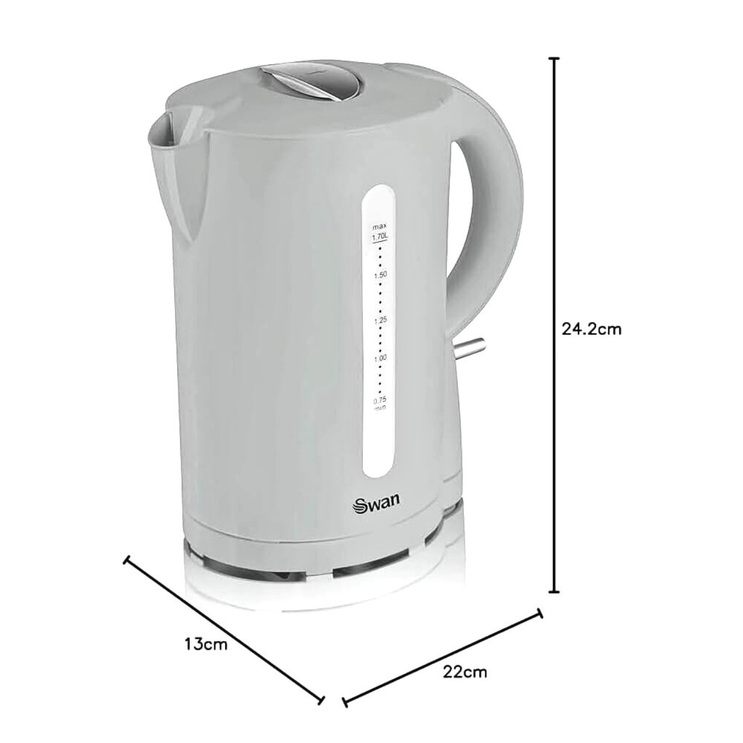 Swan 1.7 Litre Grey Electric Cordless Rapid Boil Auto Shut Off Hot Water Kettle