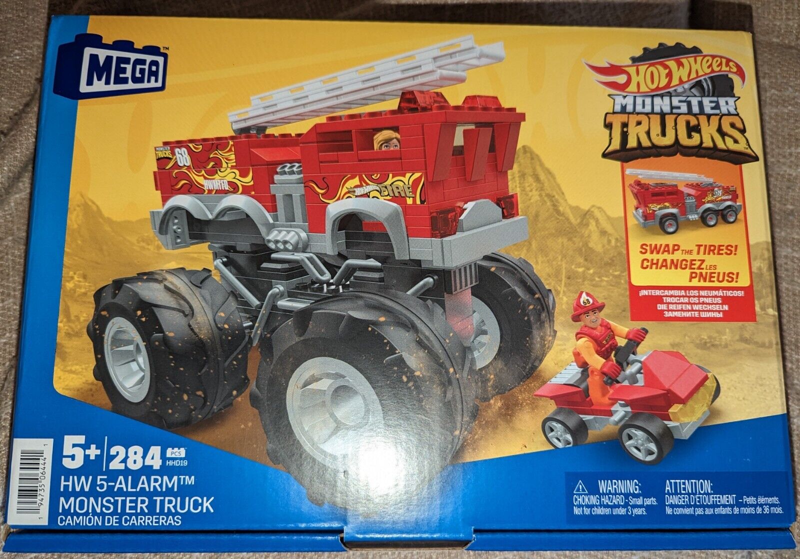 MEGA Hot Wheels Monster Truck Building Toy Playset, 5-Alarm Fire Truck with 284 Pieces and Giant Wheels, 1 Micro Action Figure, Red, Age 5+ Years, HHD19