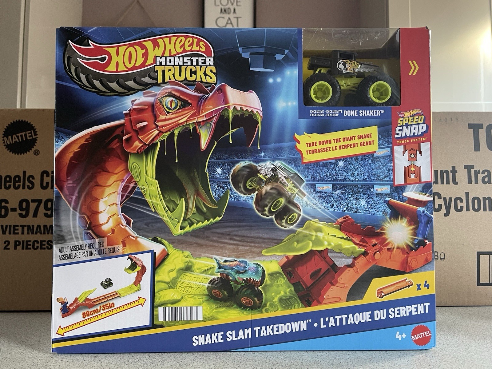 Hot Wheels Monster Trucks Toy Playset, Snake Slam Takedown Track Set with Exclusive 1:64 Scale Bone Shaker Toy Vehicle, Includes Track, JJN44