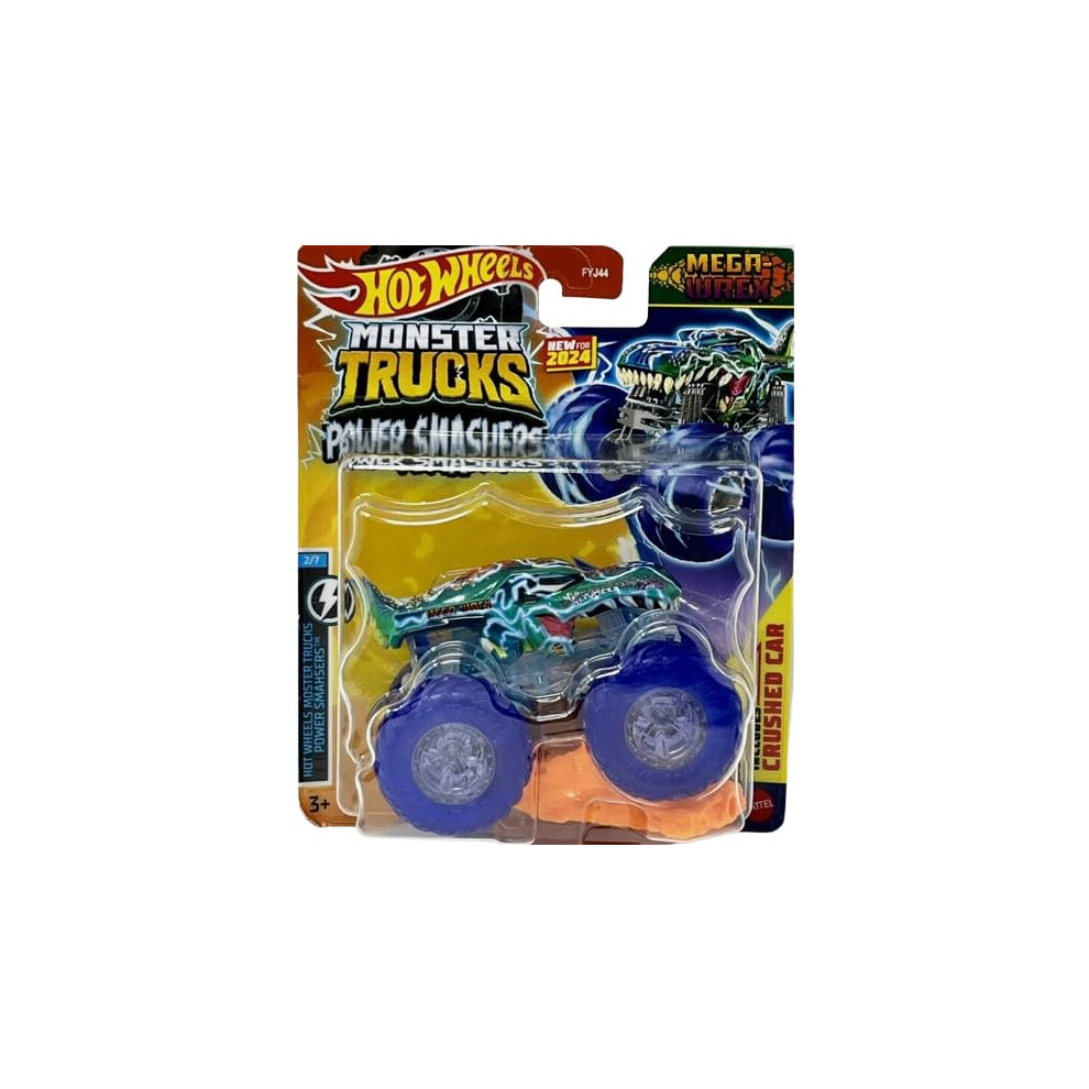 Hot Wheels Monster Trucks Mega-Wrex 2024 Power Smashers Includes Crushed Car