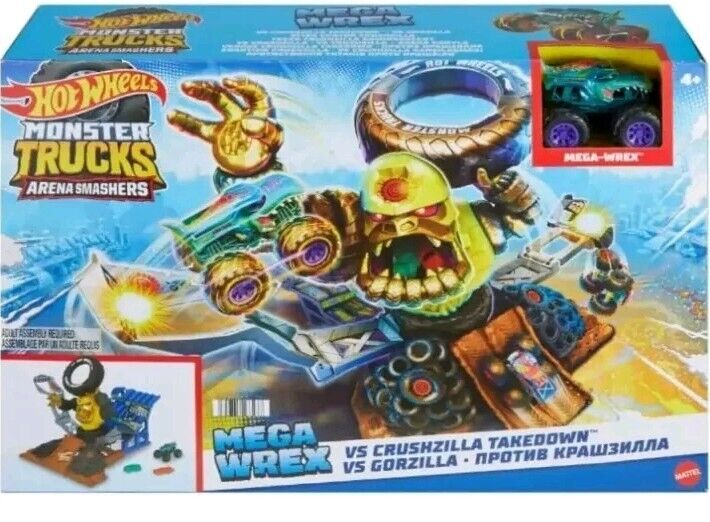 Hot Wheels Monster Trucks Arena Smashers MEGA-Wrex vs Crushzilla Takedown Playset