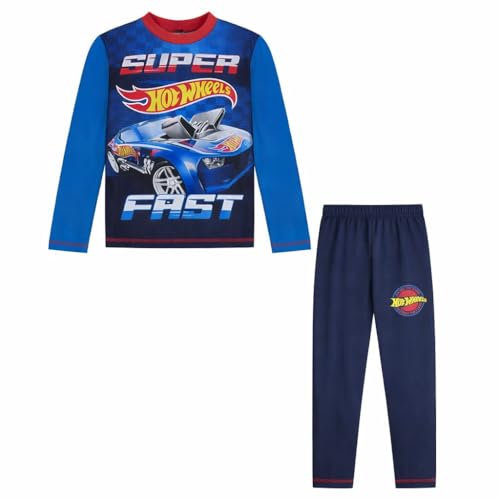 Hot Wheels Boys Pyjamas, Super Fast, 2 Piece PJ’s Set, Kids Nightwear, Blue/Black, Age 7-8 Years
