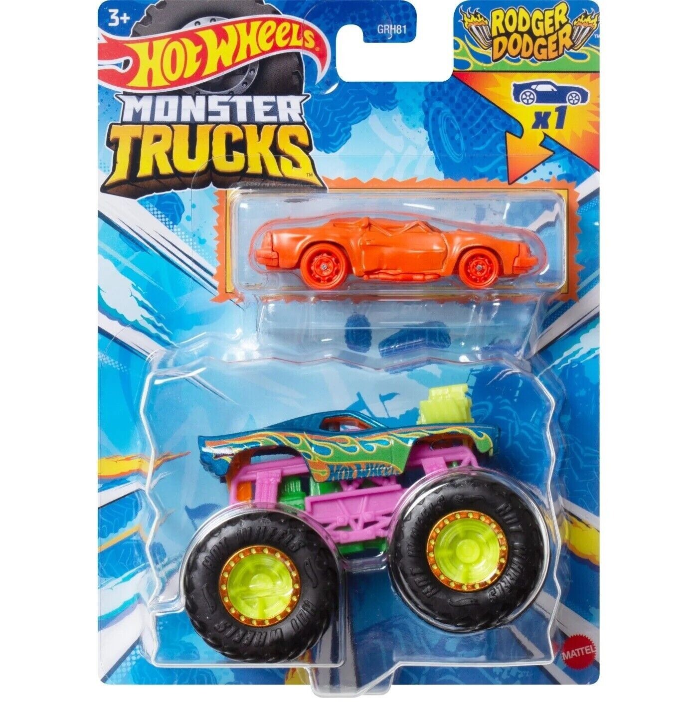 Hot Wheels Monster Trucks Rodger Dodger 1:64 + Bonus Crushed Die Cast Car NEW
