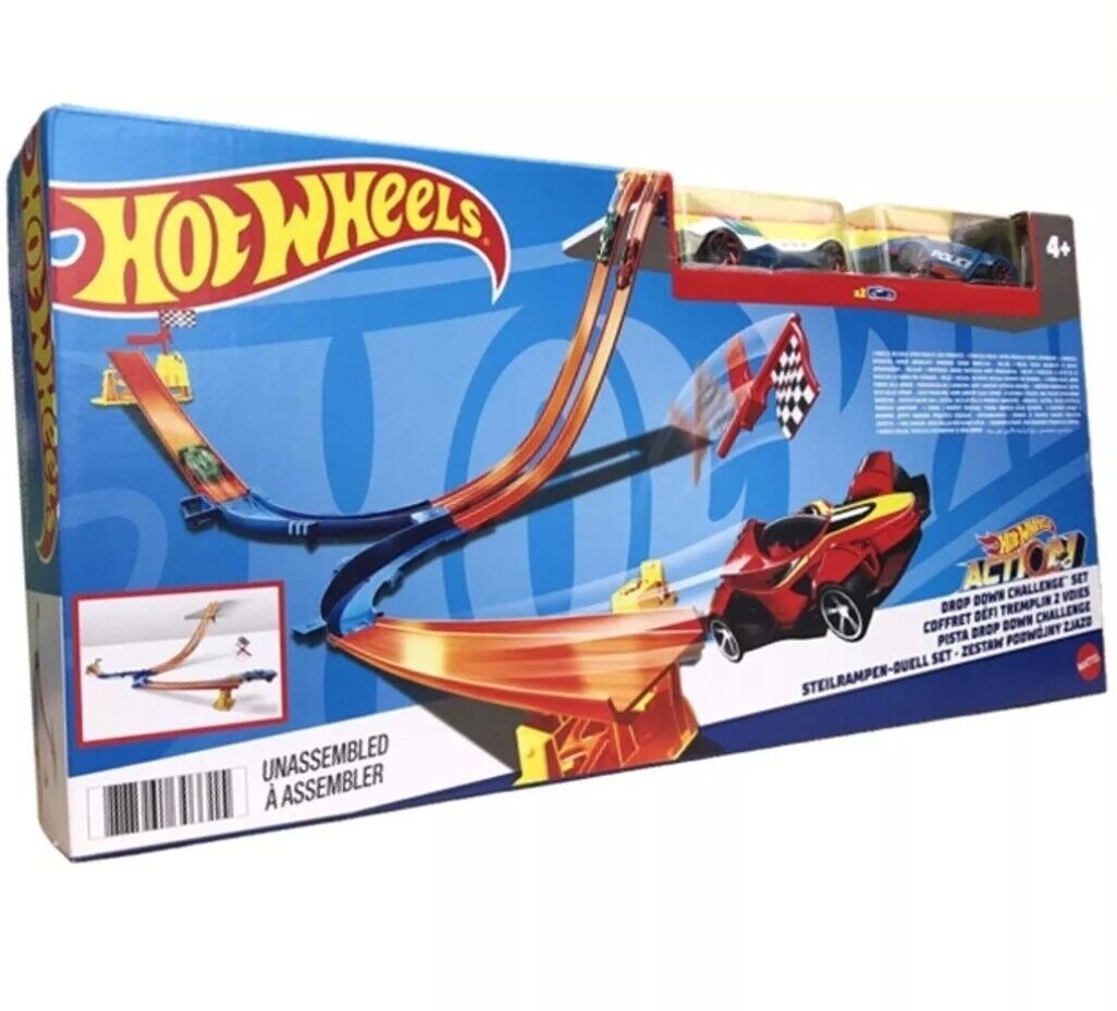 Hot Wheels Action Drop Down Challenge Set Track Includes 2 Die Cast Cars Mattel
