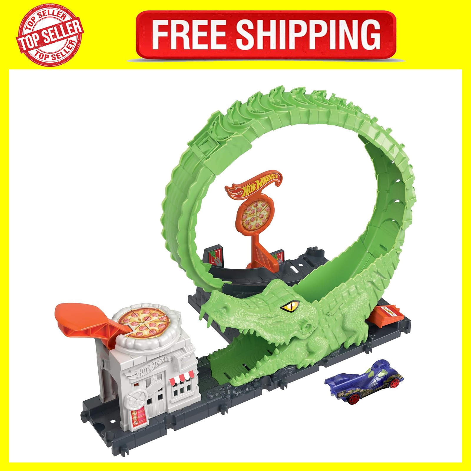 Hot Wheels Track Set And Toy Car 10 Toxic-themed Track Building Pieces With Stor