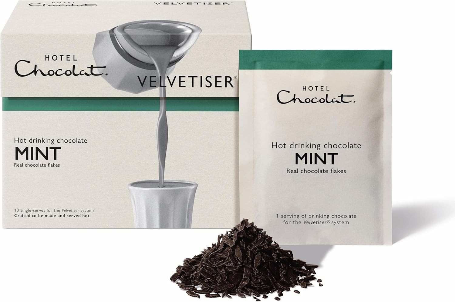 Hotel Chocolat Mint Hot Chocolate Sachets - Luxury Chocolate Flakes - Pack of 10 Single-Serve Sachets, 310g - Suitable for Vegetarians & Vegans