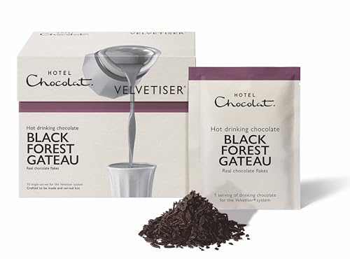Hotel Chocolat Black Forest Gateau Hot Chocolate Sachets - Luxury Chocolate Flakes - Pack of 10 Single-Serve Sachets, 310g - Suitable for Vegetarians