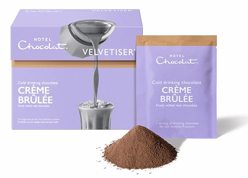 Hotel Chocolat Crème Brulee Cold Drinking Chocolate Sachets - Finely Milled Real Chocolate - Pack of 10 Single-Serve Sachets, 300g - Suitable for Vegetarians