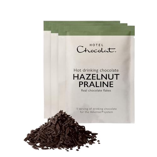 Hotel Chocolat Hazelnut Praline Hot Chocolate Sachets - Luxury Chocolate Flakes - Pack of 20 Single-Serve Sachets, 620g - Made To Pair With The Velvetiser - Serve Hot or Iced