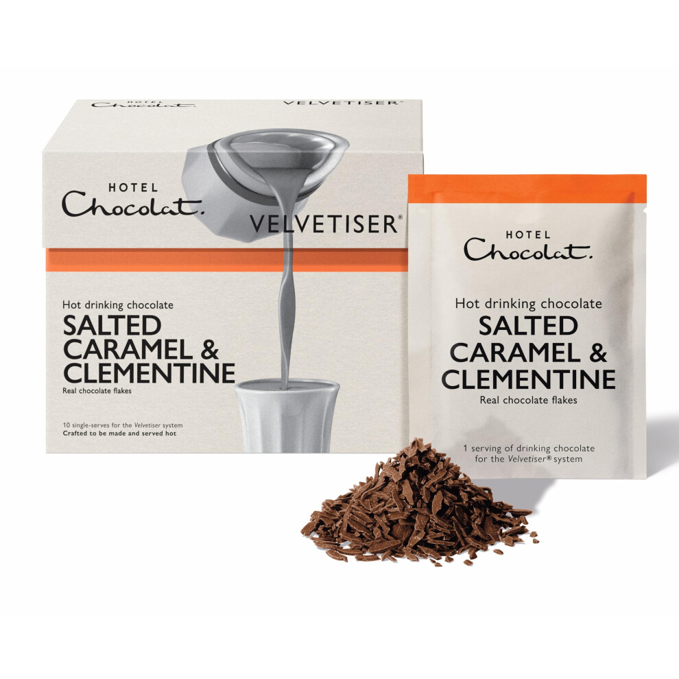 Hotel Chocolat Salted Caramel & Clementine Hot Chocolate Sachets - Luxury Chocolate Flakes - Pack of 10 Single-Serve Sachets, 310g - Suitable for Vegetarians