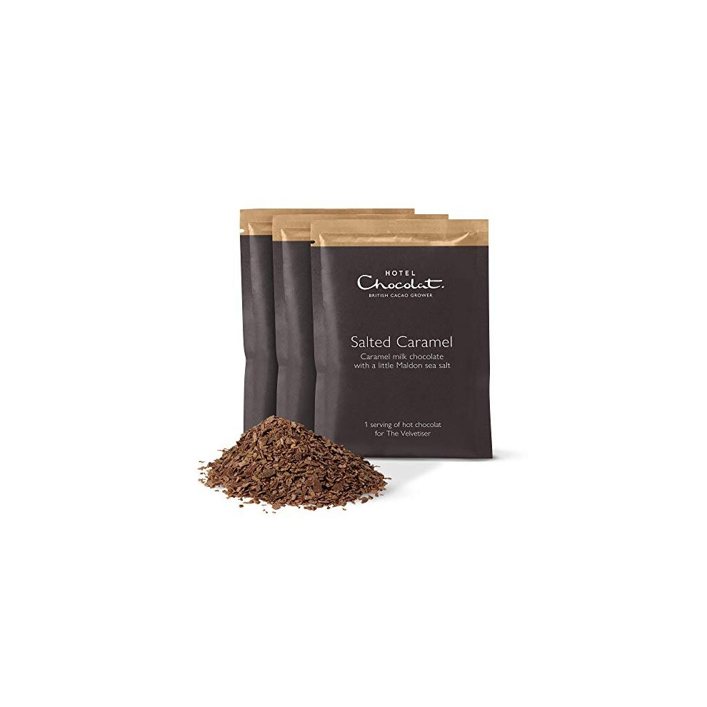 Hotel Chocolat Salted Caramel Hot Chocolate Sachets - Luxury Chocolate Flakes - Pack of 20 Single-Serve Sachets, 620g - Made To Pair With The Velvetiser - Serve Hot or Iced