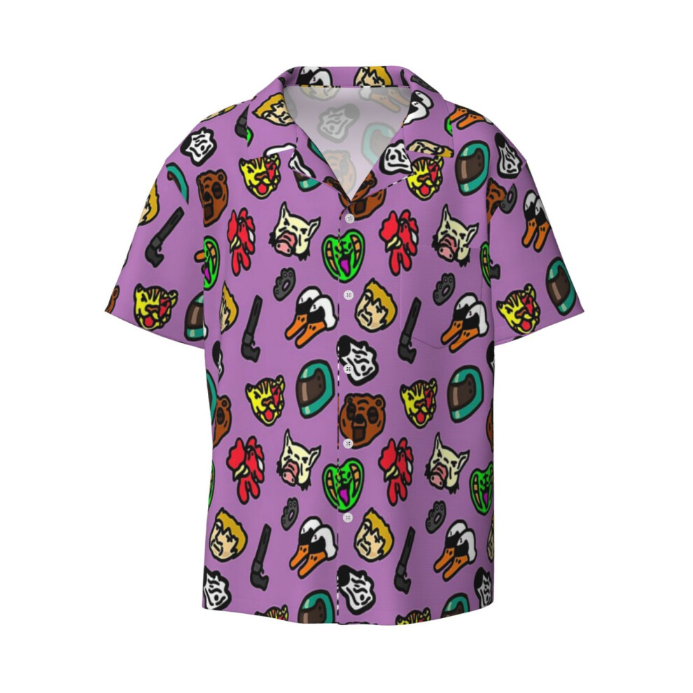 (Hotline Miami Pattern_14556) Men's Hawaiian Shirts Cuban Collar Vintage Bowling Short Sleeve Button Down Beach Shirt Casual Summer Vacation Wear Retr