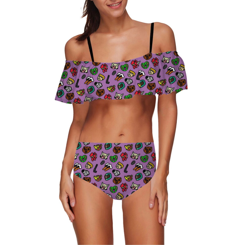 (Hotline Miami Pattern_14556) Women's Bikini High Waisted Set Ruffle Tankini Swimsuit Flounce Top Trim Two Piece Tummy Control Bathing Suit