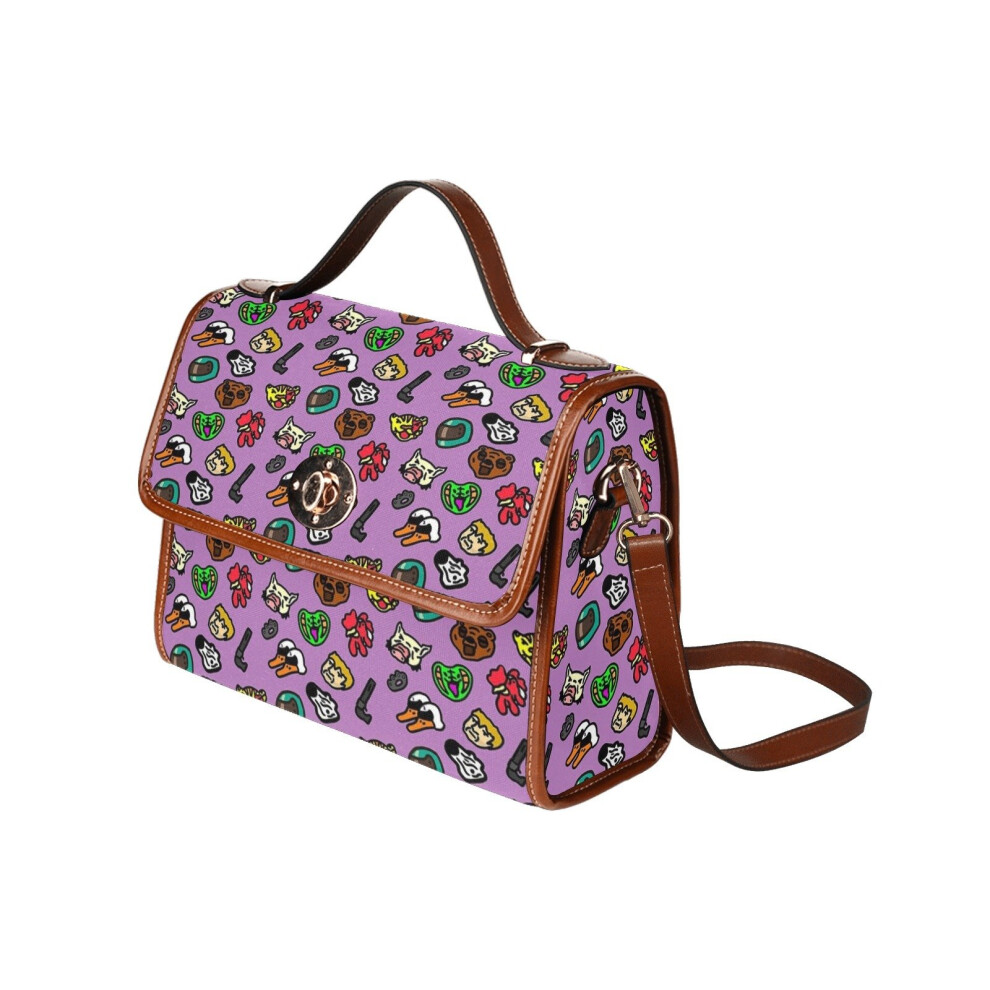 (Hotline Miami Pattern_14556) Canvas Crossbody Handbag with Lock Top All Over Print Retro Messenger Bag for Women, Girl Brown Trim & Adjustable Should