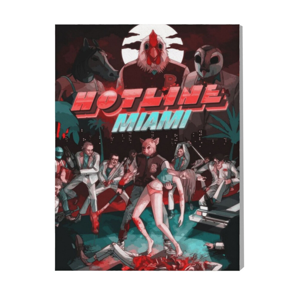 (Hotline Miami=4400) Canvas Print Framed DIY Install Kit- 16x20" Gamer Wall Art Home Decor Gaming Aesthetic Poster for Office Bedroom Living Room Bath