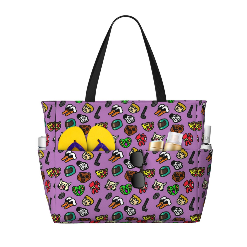 (Hotline Miami Pattern_14556) Beach Bag for Women Large Capacity Waterproof Sandproof Tote with 7 Pockets Pool Zipper Bags for Travel Vacation Gym Cam
