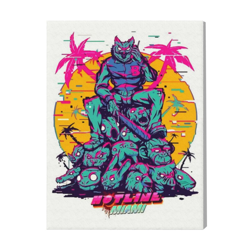(Hotline Miami 80s Gaming=8063) Canvas Print Framed DIY Install Kit- 16x20" Gamer Wall Art Home Decor Gaming Aesthetic Poster for Office Bedroom Livin